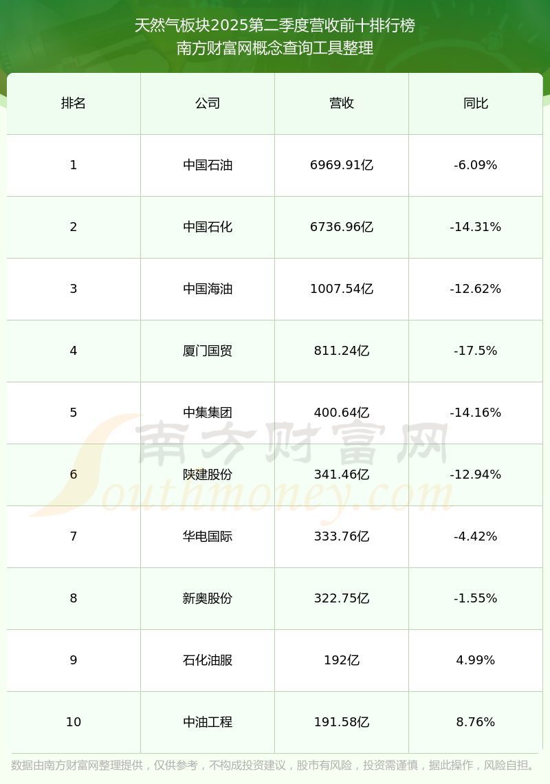 按照南方财富网概念查询工具统计,该股所属板块为天然气板块,该板块共有157只股票,广安爱众2025第二季度营收在该板块中排名为第88名,该板块2025第二季度营收排名前十的股票如下表: