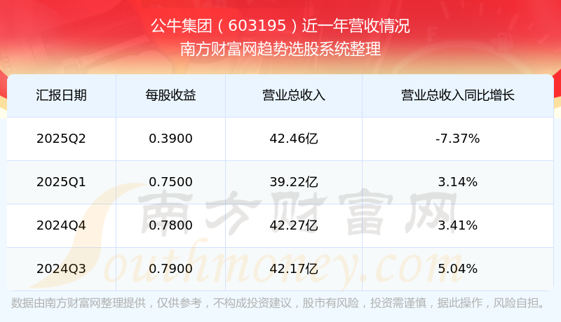公牛集团(603195)发布2025年第二季度财报。2025年第二季度公牛集团实现营业收入42.46亿元,同比增加-7.37元%,环比增加8.24%;净利润为10.85亿元,同比增长-17.16%,环比增长11.26%。