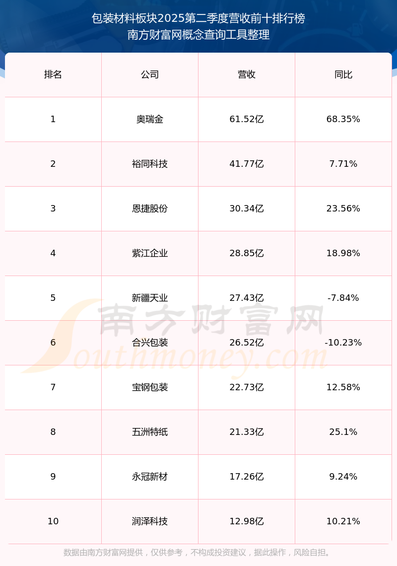 按照南方财富网概念查询工具统计,该股所属板块为包装材料板块,该板块共有45只股票,东峰集团2025第二季度营收在该板块中排名为第30名,该板块2025第二季度营收排名前十的股票如下表: