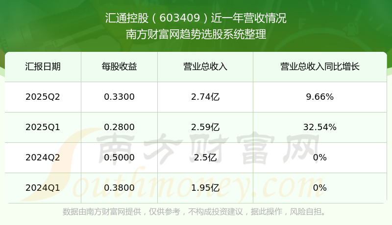 汇通控股股票近一年营收情况如下表: