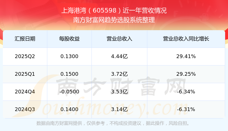 上海港湾股票近一年营收情况如下表: