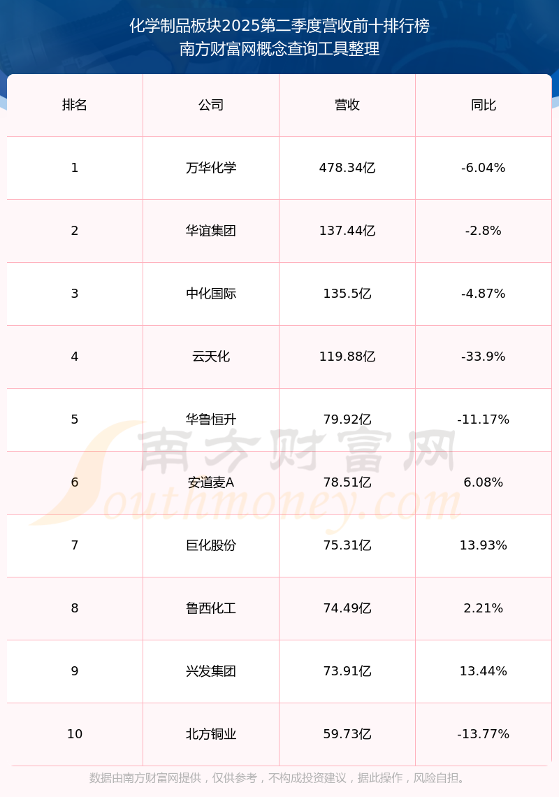 按照南方财富网概念查询工具统计,该股所属板块为化学制品板块,该板块共有236只股票,龙蟠科技2025第二季度营收在该板块中排名为第236名,该板块2025第二季度营收排名前十的股票如下表:
