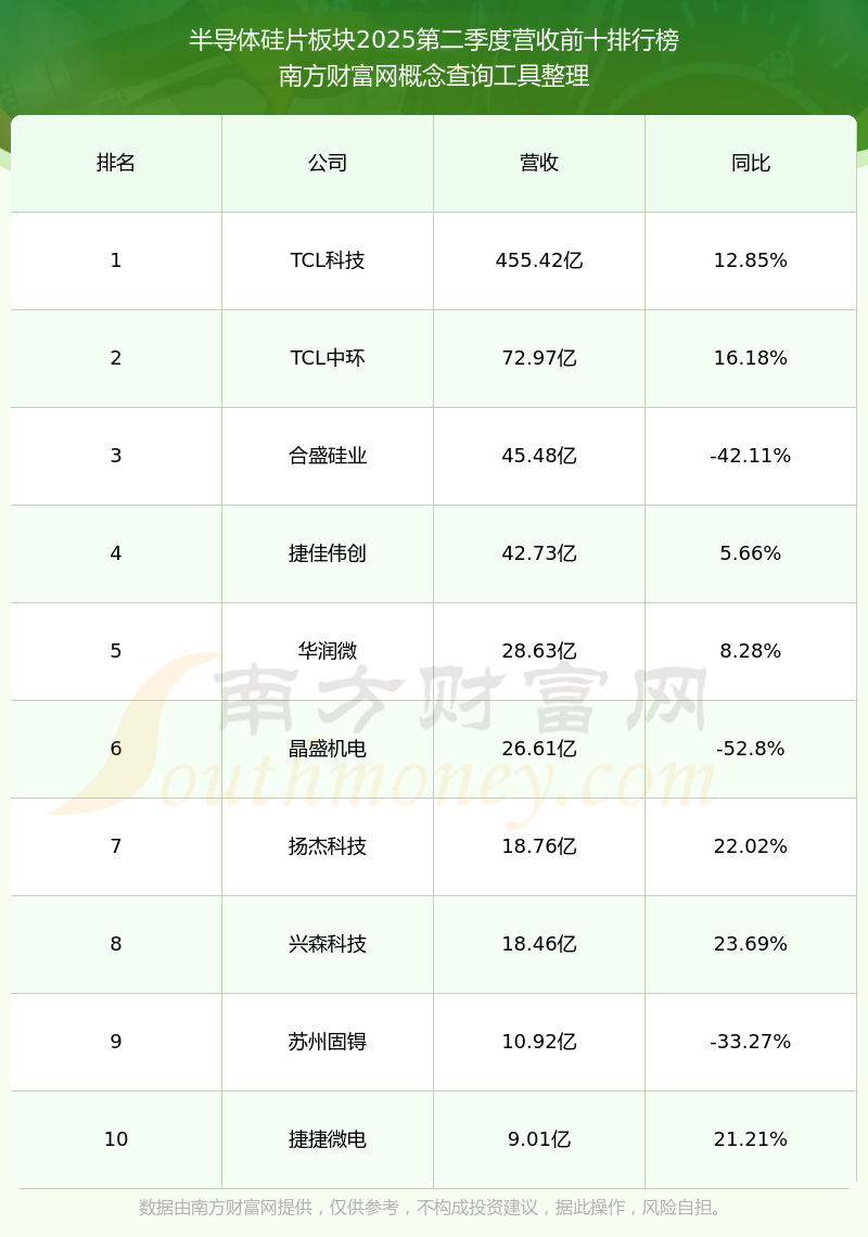 按照南方财富网概念查询工具统计,该股所属板块为半导体硅片板块,该板块共有31只股票,沪硅产业2025第二季度营收在该板块中排名为第11名,该板块2025第二季度营收排名前十的股票如下表: