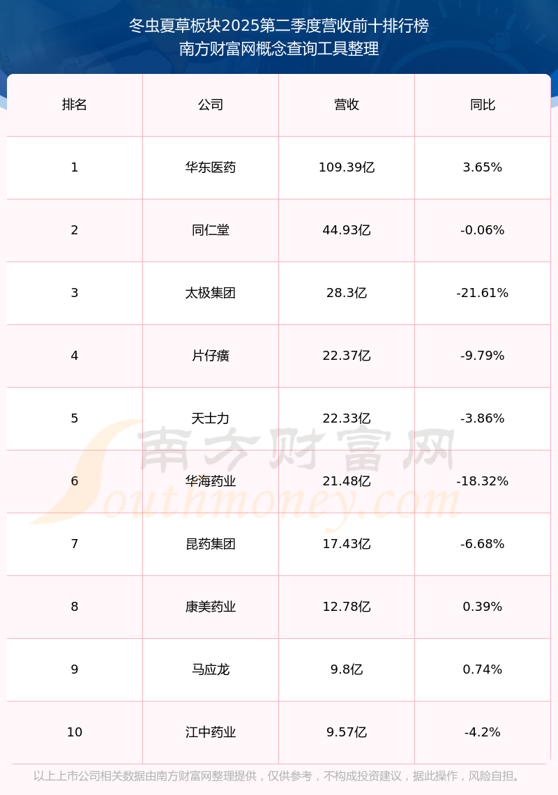 按照南方财富网概念查询工具统计,该股所属板块为冬虫夏草板块,该板块共有20只股票,青海春天2025第二季度营收在该板块中排名为第20名,该板块2025第二季度营收排名前十的股票如下表: