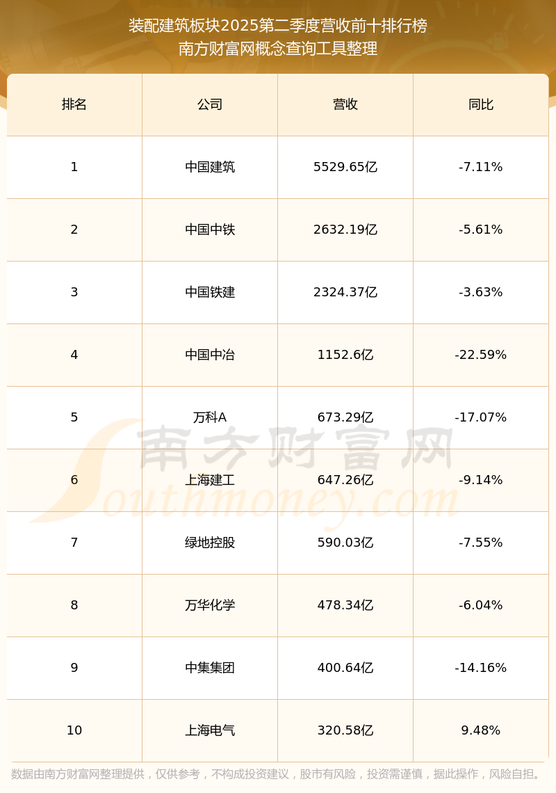 按照南方财富网概念查询工具统计,该股所属板块为装配建筑板块,该板块共有95只股票,惠达卫浴2025第二季度营收在该板块中排名为第47名,该板块2025第二季度营收排名前十的股票如下表: