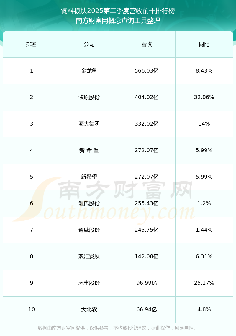 按照南方财富网概念查询工具统计,该股所属板块为饲料板块,该板块共有70只股票,路德环境2025第二季度营收在该板块中排名为第66名,该板块2025第二季度营收排名前十的股票如下表: