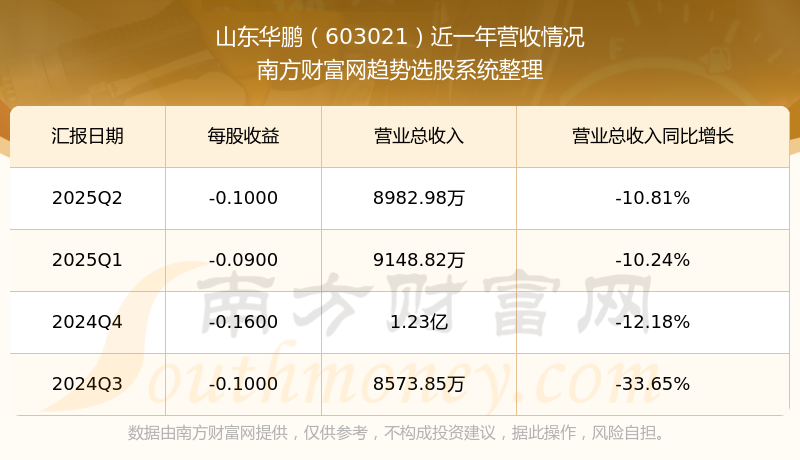 一、山东华鹏(603021)股票营收情况