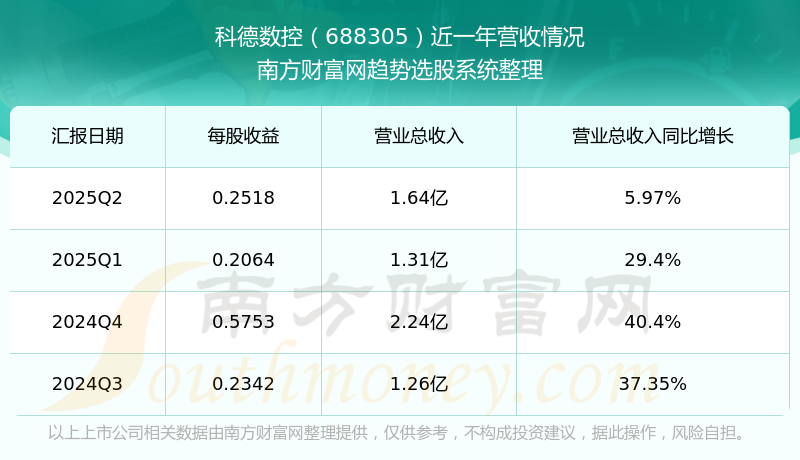 科德数控股票近一年营收情况如下表: