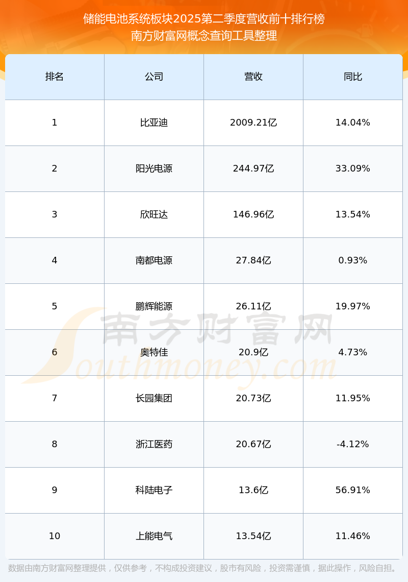 按照南方财富网概念查询工具统计,该股所属板块为储能电池系统板块,该板块共有11只股票,派能科技2025第二季度营收在该板块中排名为第11名,该板块2025第二季度营收排名前十的股票如下表:
