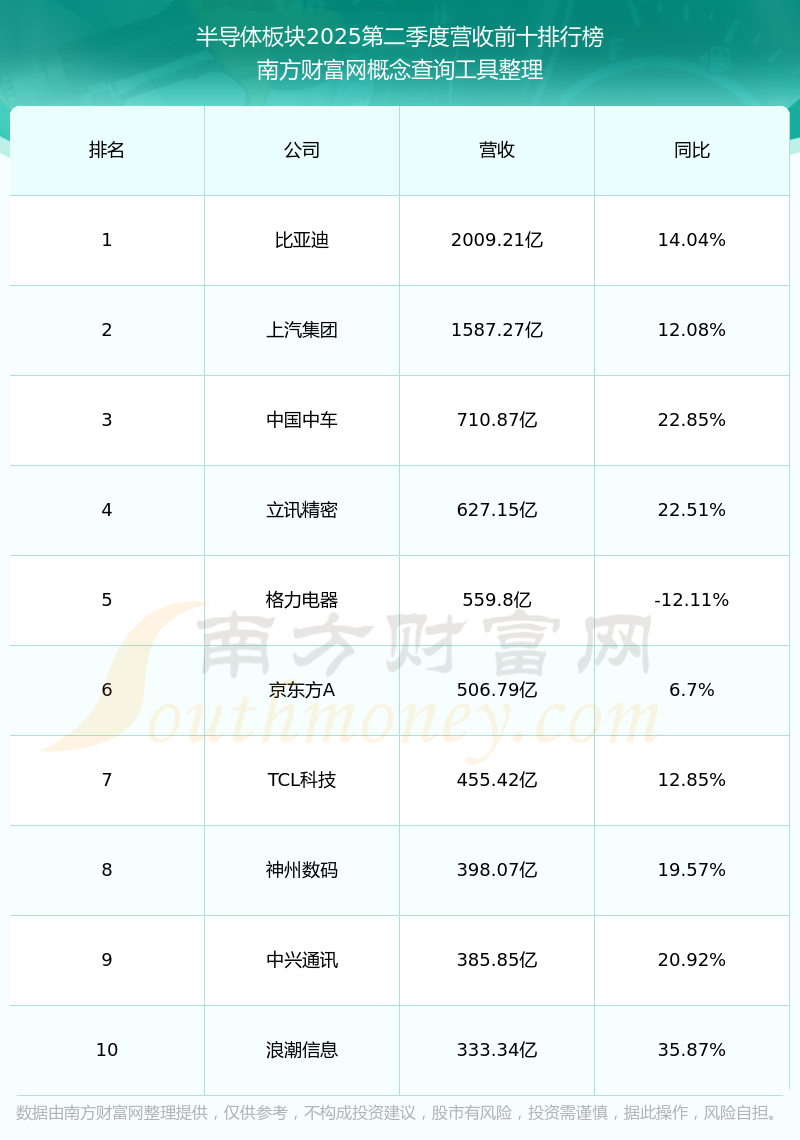 按照南方财富网概念查询工具统计,该股所属板块为半导体板块,该板块共有532只股票,和林微纳2025第二季度营收在该板块中排名为第400名,该板块2025第二季度营收排名前十的股票如下表: