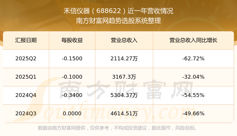 禾信仪器股票近一年营收情况如下表: