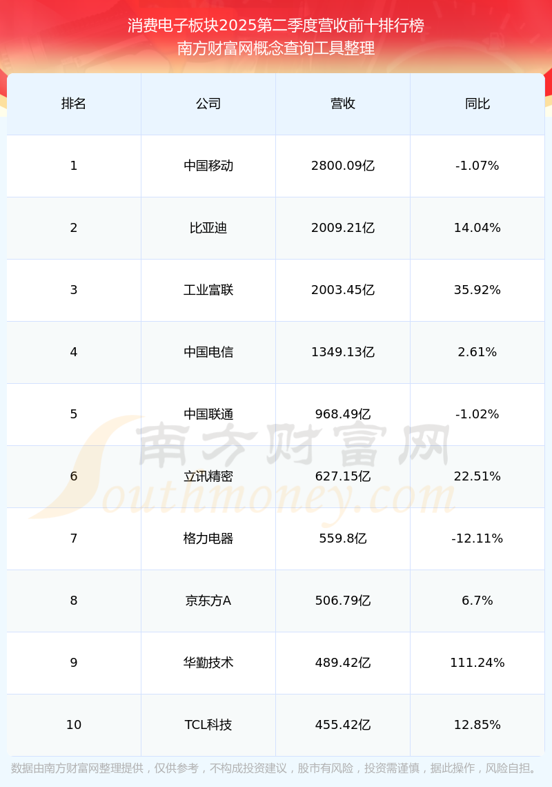 按照南方财富网概念查询工具统计,该股所属板块为消费电子板块,该板块共有441只股票,福蓉科技2025第二季度营收在该板块中排名为第202名,该板块2025第二季度营收排名前十的股票如下表: