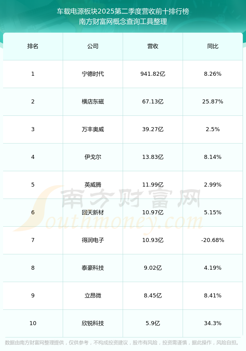 按照南方财富网概念查询工具统计,该股所属板块为车载电源板块,该板块共有14只股票,威迈斯2025第二季度营收在该板块中排名为第14名,该板块2025第二季度营收排名前十的股票如下表: