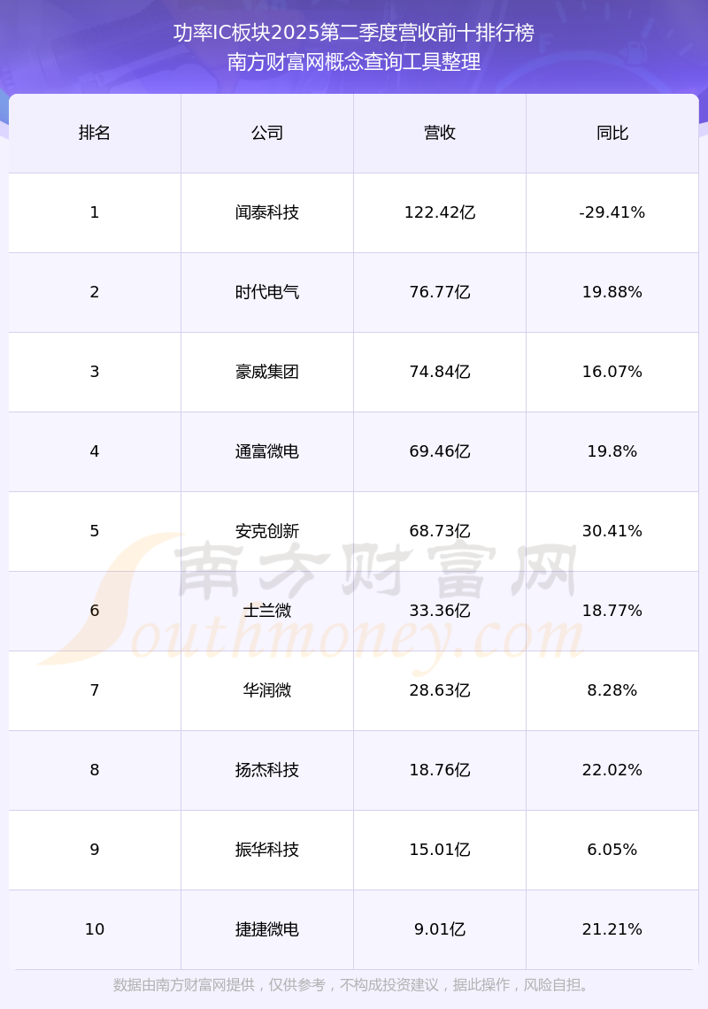 按照南方财富网概念查询工具统计,该股所属板块为功率IC板块,该板块共有17只股票,锴威特2025第二季度营收在该板块中排名为第17名,该板块2025第二季度营收排名前十的股票如下表: