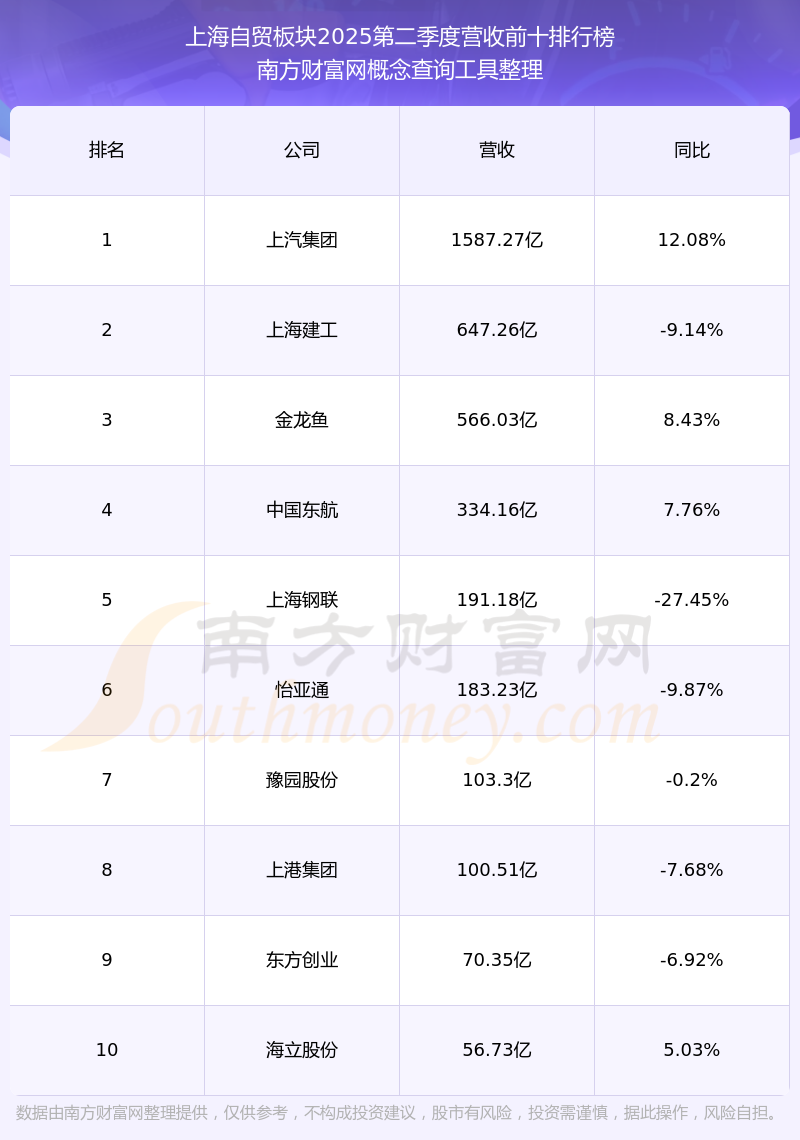 按照南方财富网概念查询工具统计,该股所属板块为上海自贸板块,该板块共有49只股票,上海雅仕2025第二季度营收在该板块中排名为第23名,该板块2025第二季度营收排名前十的股票如下表: