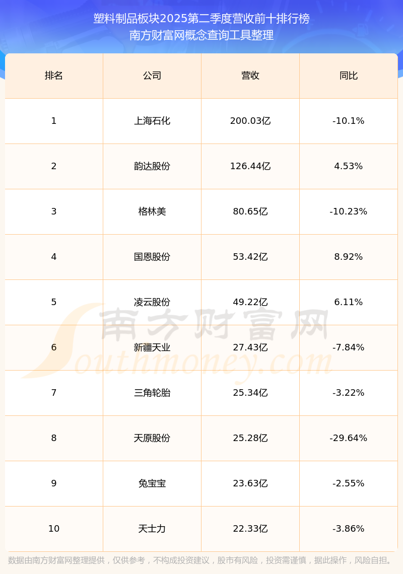 按照南方财富网概念查询工具统计,该股所属板块为塑料制品板块,该板块共有85只股票,茶花股份2025第二季度营收在该板块中排名为第65名,该板块2025第二季度营收排名前十的股票如下表: