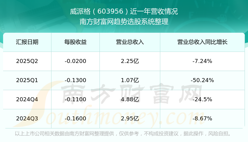 威派格股票近一年营收情况如下表: