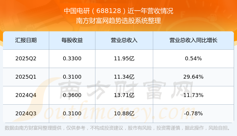 中国电研股票近一年营收情况如下表: