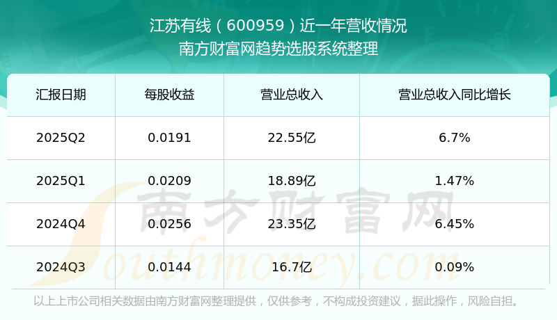 江苏有线股票近一年营收情况如下表:
