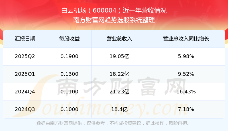 白云机场2025年第二季度财报显示,公司主营收入19.05亿元,同比5.98%;归母净利润4.54亿元,同比81.54%;扣非净利润2.97亿元,同比24.21%。