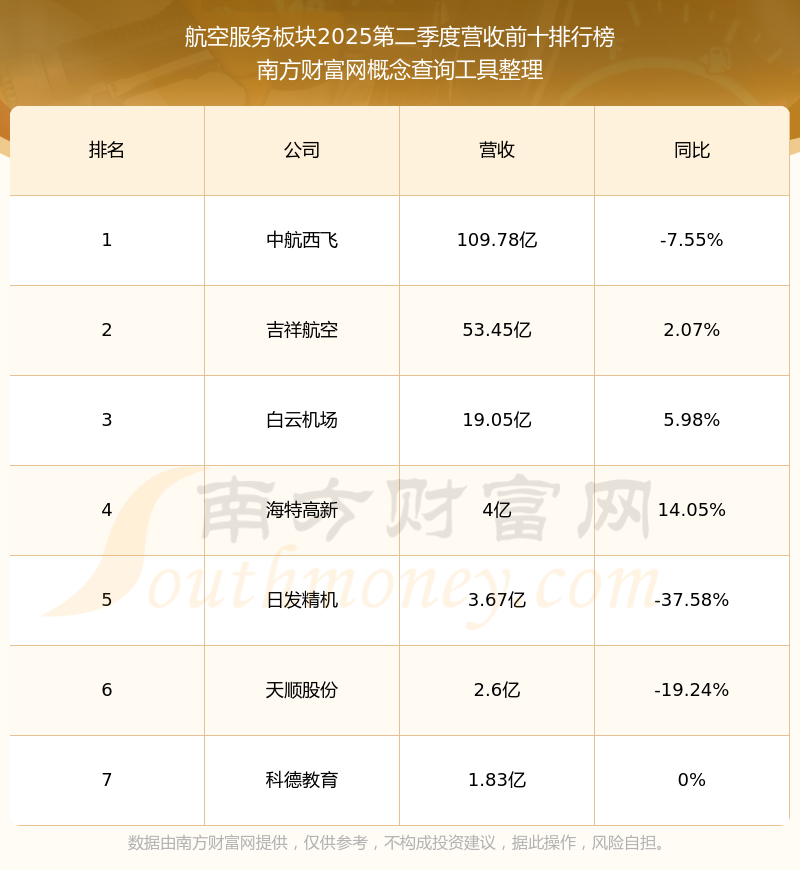 按照南方财富网概念查询工具统计,该股所属板块为航空服务板块,该板块共有7只股票,白云机场2025第二季度营收在该板块中排名为第3名,该板块2025第二季度营收排名前十的股票如下表:
