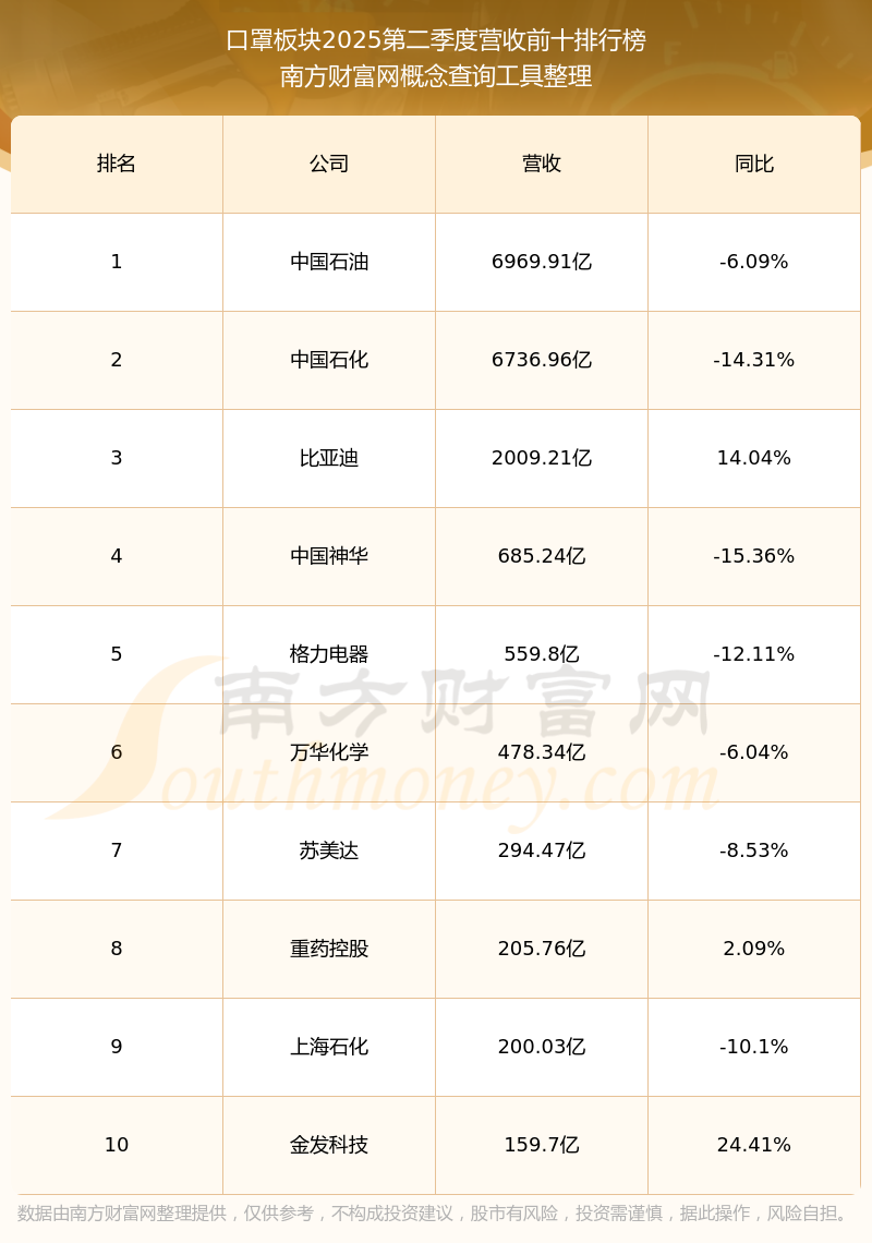 按照南方财富网概念查询工具统计,该股所属板块为口罩板块,该板块共有212只股票,维力医疗2025第二季度营收在该板块中排名为第138名,该板块2025第二季度营收排名前十的股票如下表: