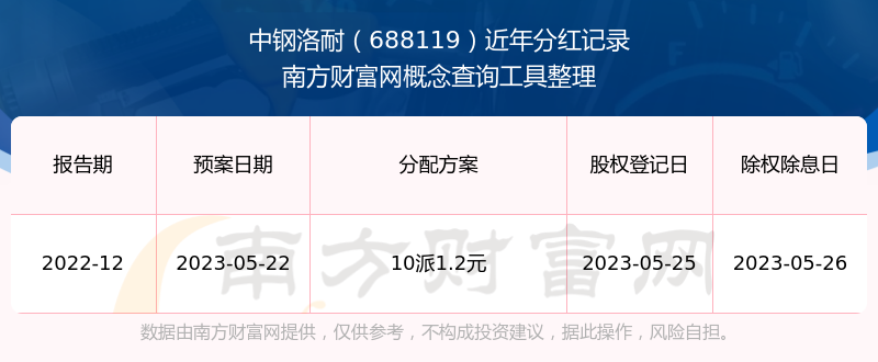 一、中钢洛耐(688119)股票分红记录