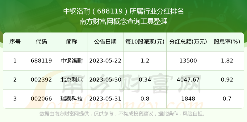 二、中钢洛耐688119行业分红排名