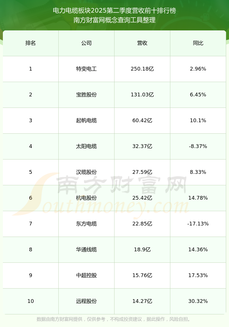 按照南方财富网概念查询工具统计,该股所属板块为电力电缆板块,该板块共有19只股票,起帆电缆2025第二季度营收在该板块中排名为第3名,该板块2025第二季度营收排名前十的股票如下表: