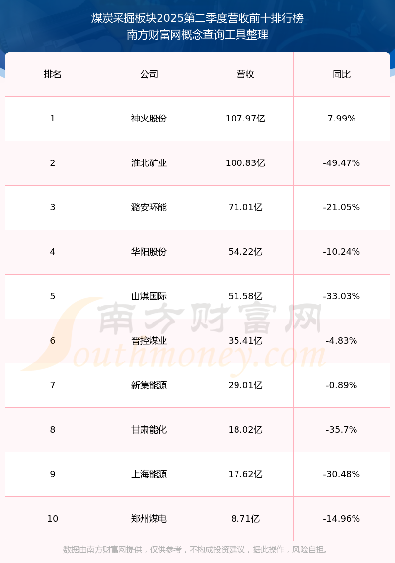 按照南方财富网概念查询工具统计,该股所属板块为煤炭采掘板块,该板块共有11只股票,新集能源2025第二季度营收在该板块中排名为第7名,该板块2025第二季度营收排名前十的股票如下表: