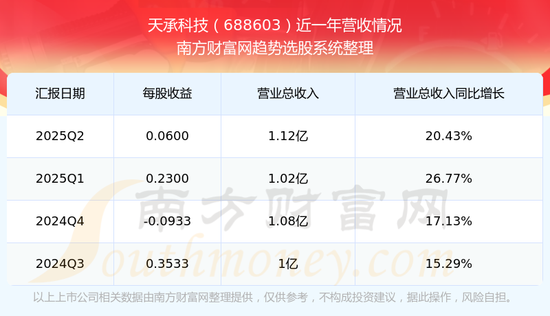 天承科技股票近一年营收情况如下表: