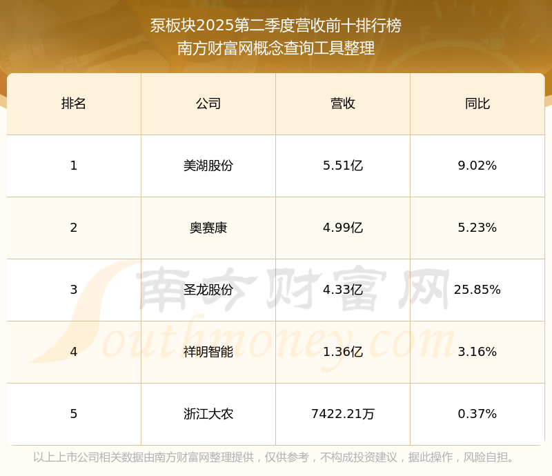 按照南方财富网概念查询工具统计,该股所属板块为泵板块,该板块共有5只股票,航天动力2025第二季度营收在该板块中排名为第5名,该板块2025第二季度营收排名前十的股票如下表: