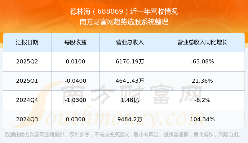德林海(688069)发布2025年第二季度财报。2025年第二季度德林海实现营业收入6170.19万元,同比增加-63.08元%,环比增加32.94%;净利润为160.73万元,同比增长-94.19%,环比增长134.2%。