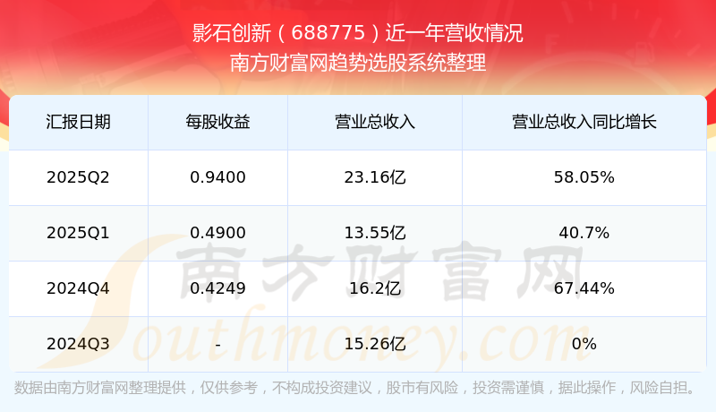 影石创新2025年第二季度财报显示,公司主营收入23.16亿元,同比58.05%;归母净利润3.43亿元,同比1.73%;扣非净利润3.31亿元,同比2.6%;