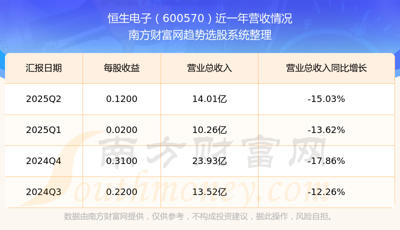 恒生电子股票近一年营收情况如下表: