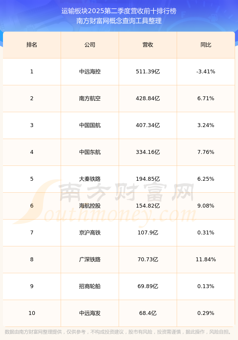 按照南方财富网概念查询工具统计,该股所属板块为运输板块,该板块共有37只股票,锦江航运2025第二季度营收在该板块中排名为第37名,该板块2025第二季度营收排名前十的股票如下表: