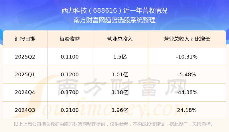 按照南方财富网概念查询工具统计,该股所属板块为单相表板块,该板块共有7只股票,西力科技2025第二季度营收在该板块中排名为第7名,该板块2025第二季度营收排名前十的股票如下表: