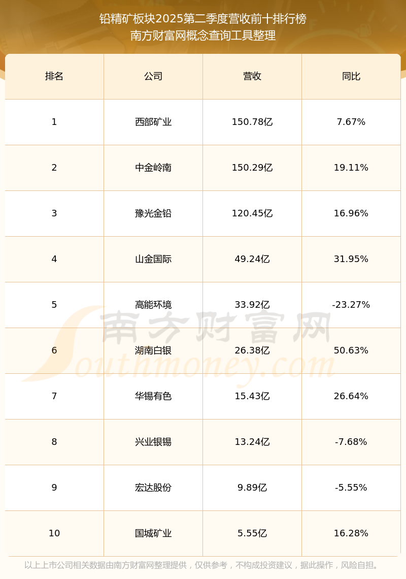 按照南方财富网概念查询工具统计,该股所属板块为铅精矿板块,该板块共有14只股票,西藏珠峰2025第二季度营收在该板块中排名为第11名,该板块2025第二季度营收排名前十的股票如下表: