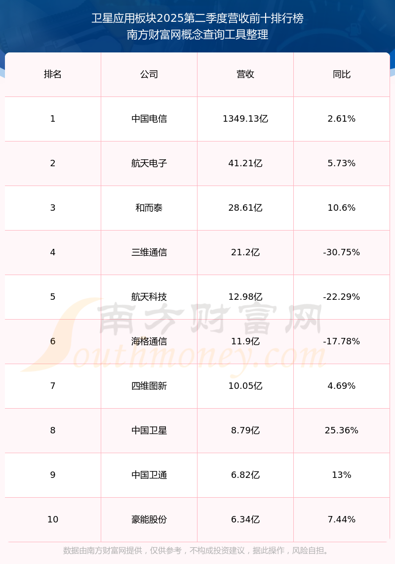 按照南方财富网概念查询工具统计,该股所属板块为卫星应用板块,该板块共有28只股票,中国卫星2025第二季度营收在该板块中排名为第8名,该板块2025第二季度营收排名前十的股票如下表: