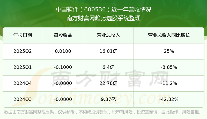 中国软件股票近一年营收情况如下表:
