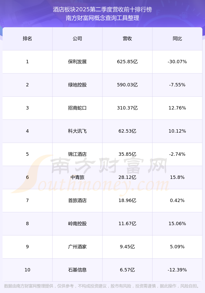 按照南方财富网概念查询工具统计,该股所属板块为酒店板块,该板块共有28只股票,锦江酒店2025第二季度营收在该板块中排名为第5名,该板块2025第二季度营收排名前十的股票如下表: