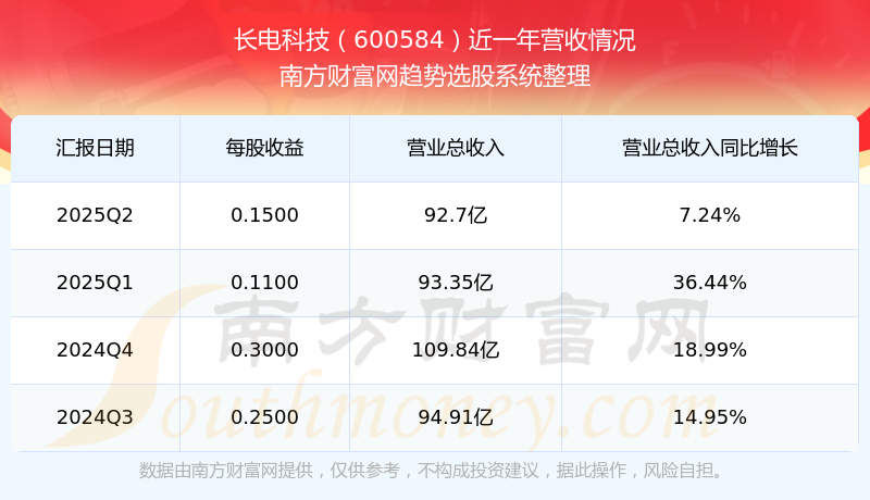 长电科技2025年第二季度报告显示,公司实现主营业务收入92.7亿元,较去年同期增长7.24%;归属于母公司股东的净利润为2.67亿元,同比增长-44.75%;扣除非经常性损益后的净利润为2.44亿元,同比增长-48.39%。