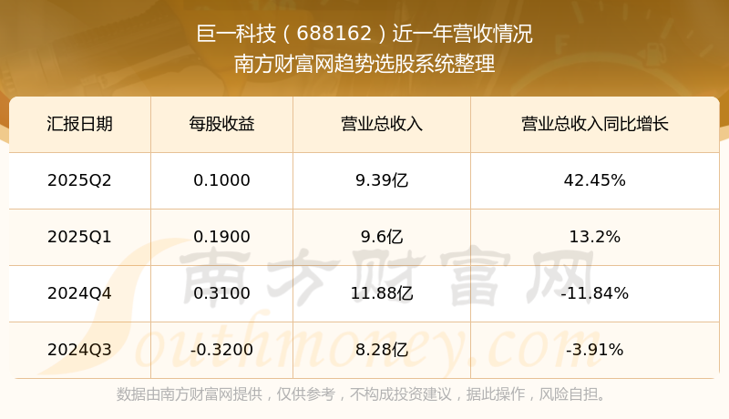 巨一科技股票近一年营收情况如下表: