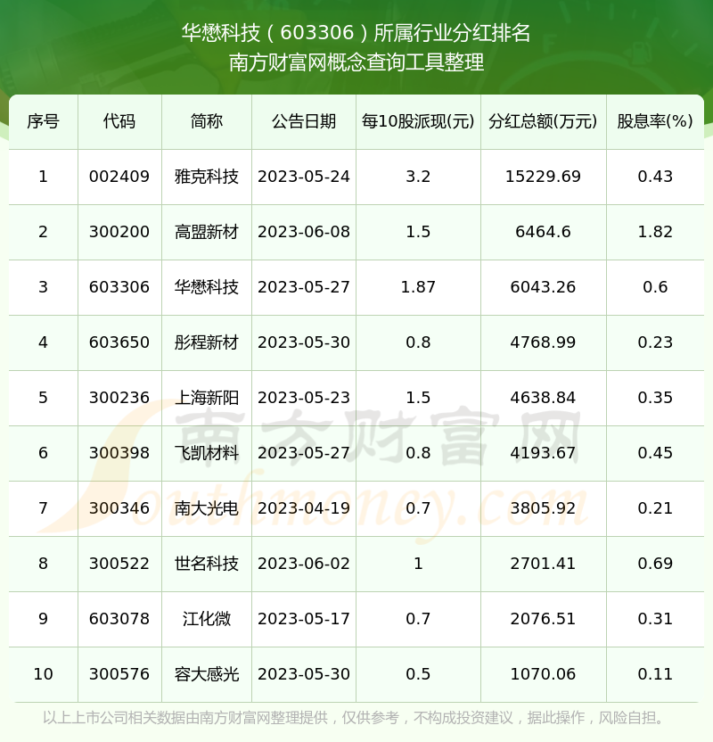 按照南方财富网趋势选股系统统计,华懋科技所属行业为汽车零部件行业,汽车零部件行业分红排名情况如下表: