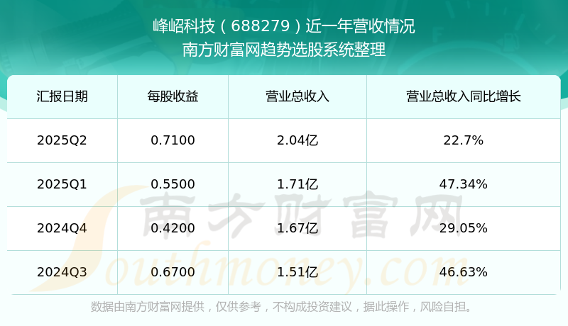 峰岹科技发布2025年第二季度财报。实现总营收2.04亿元,同比增长22.7%;扣非净利润同比增长1.5%至6226.97万元。