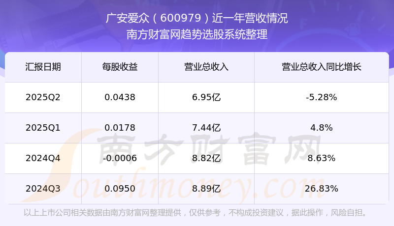 广安爱众股票近一年营收情况如下表: