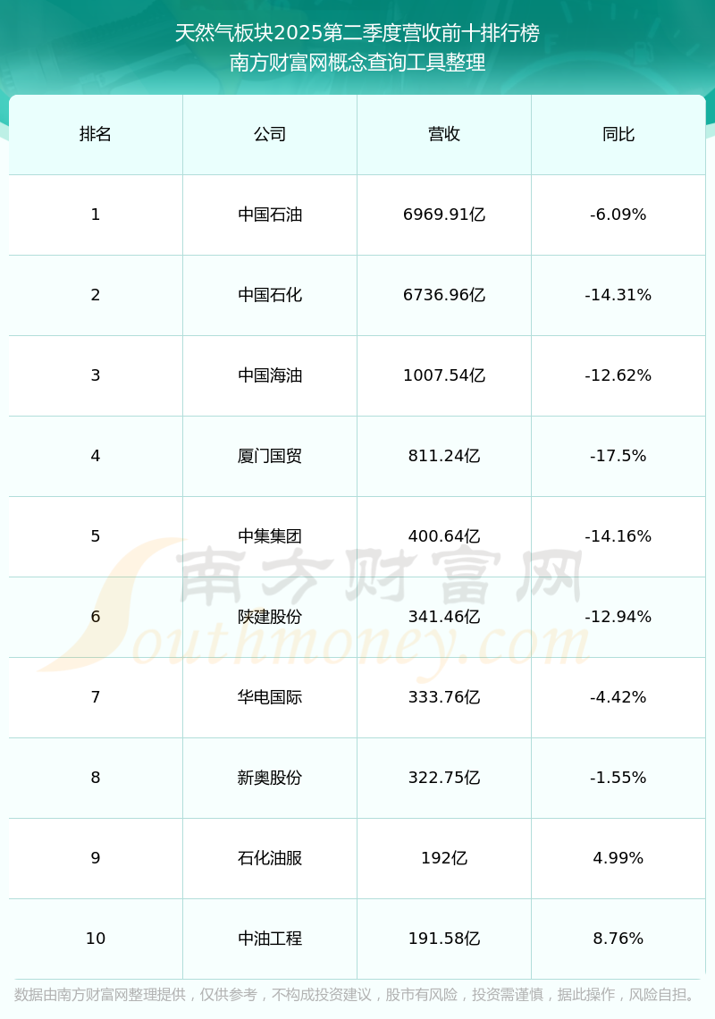 按照南方财富网概念查询工具统计,该股所属板块为天然气板块,该板块共有157只股票,广安爱众2025第二季度营收在该板块中排名为第88名,该板块2025第二季度营收排名前十的股票如下表: