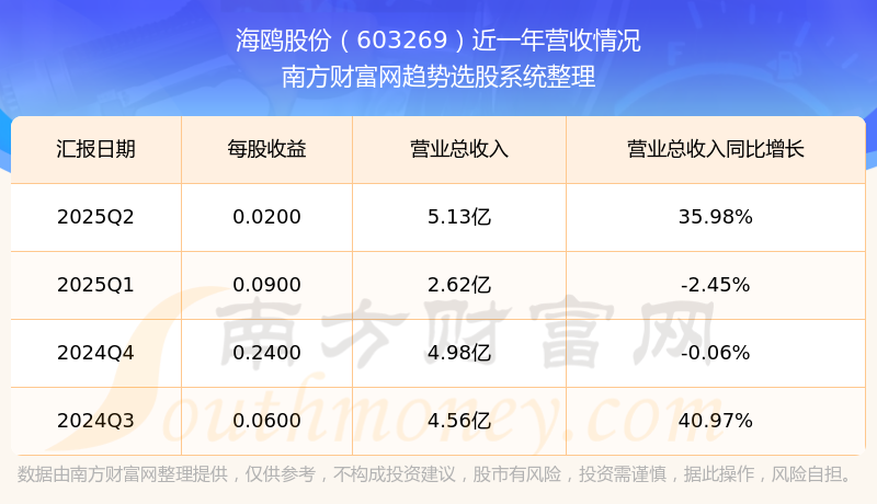 海鸥股份股票近一年营收情况如下表:
