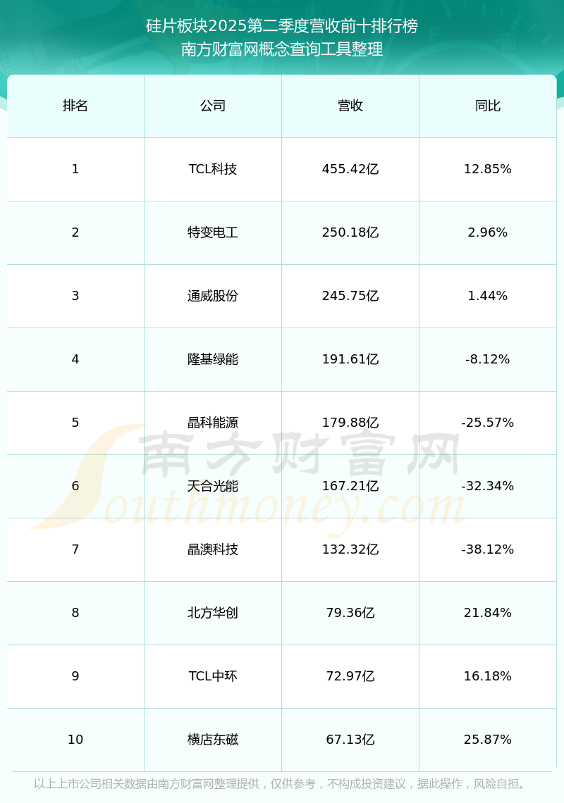 按照南方财富网概念查询工具统计,该股所属板块为硅片板块,该板块共有76只股票,高测股份2025第二季度营收在该板块中排名为第44名,该板块2025第二季度营收排名前十的股票如下表: