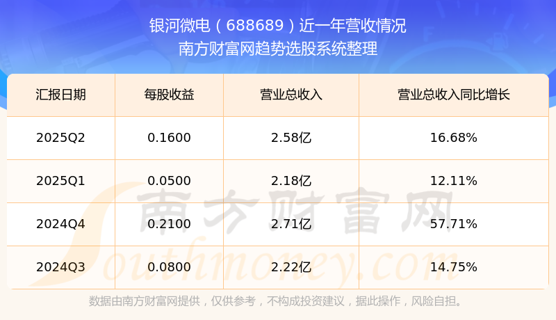 银河微电股票近一年营收情况如下表: